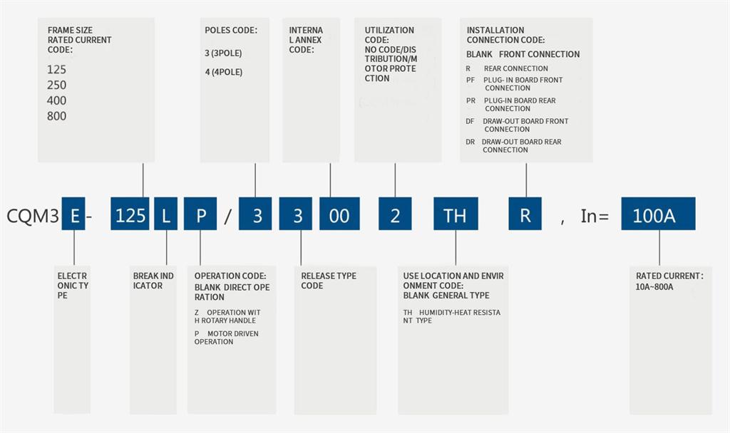 molded case circuit breakers have the functions of long overload delay reverse time limit, short delay reverse time limit, short circuit delay fixed time limit, short circuit instantaneous and under-voltage protection. The protection characteristics of circuit breaker are complete and accurate. It can improve the reliability of power supply and avoid unnecessary blackouts. Only 1, 3, 5 power lines, 2, 4, 6 load lines are allowed.
