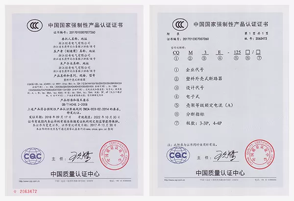 Note:1. According to the IEC60947-1 term "life" denotes the probability of the number of operating cycles that an electrical appliance completes before repairing or replacing components. 2.Zero flying arc cover with height of 4mm (CQM3-63L/M,), 6.2mm CQM3-100L/M, 7.5mm (CQM3-250L/M), 9.3mm (CQM3-400L/M, CQM3-630L/M) and 9.5mm (CQM3-800L/M) is selected to realize zero flying arc.
