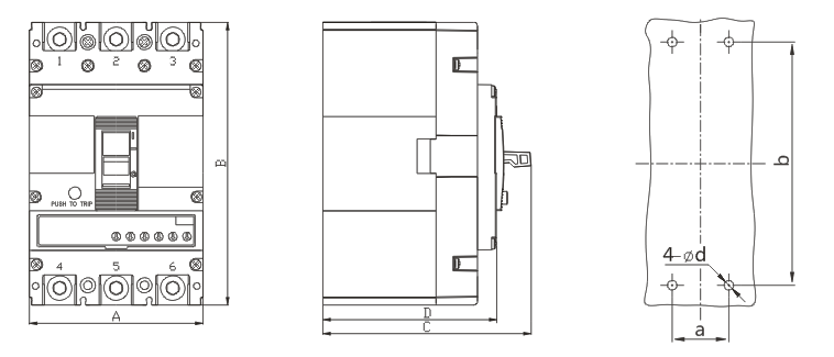 molded case circuit breakers have the functions of long overload delay reverse time limit, short delay reverse time limit, short circuit delay fixed time limit, short circuit instantaneous and under-voltage protection. The protection characteristics of circuit breaker are complete and accurate. It can improve the reliability of power supply and avoid unnecessary blackouts. Only 1, 3, 5 power lines, 2, 4, 6 load lines are allowed.
